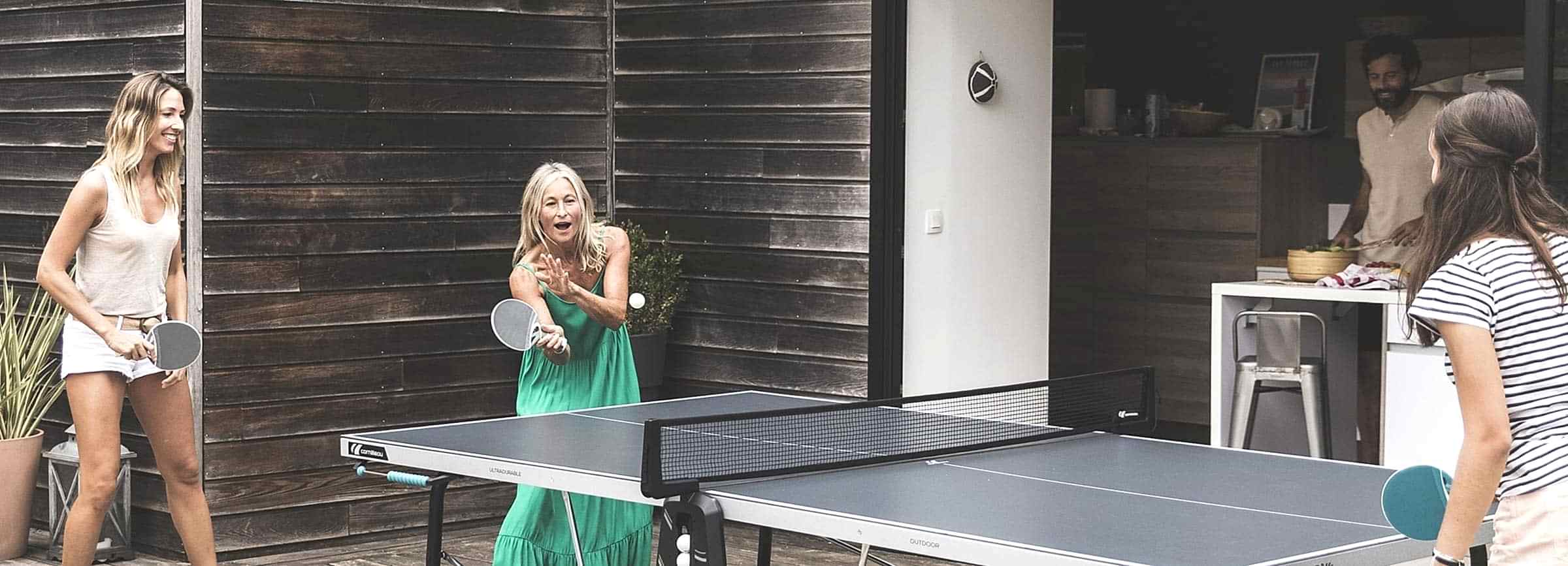 Masaınızı istediğiniz yere taşıyın ve alışılmadık yollarda oynayın. Cornilleau masalarındaki büyük çift tekerlekler birçok avantaja sahiptir. Engelleri kolayca aşmanızı sağlar, farklı zemin tiplerinde zahmetsizce ilerler ve örneğin masanızı açmak için ideal noktaya ulaşmak üzere dar bir dönüş yaparken özellikle çevik, manevra kabiliyeti yüksek ve istikrarlı olduklarını kanıtlar.